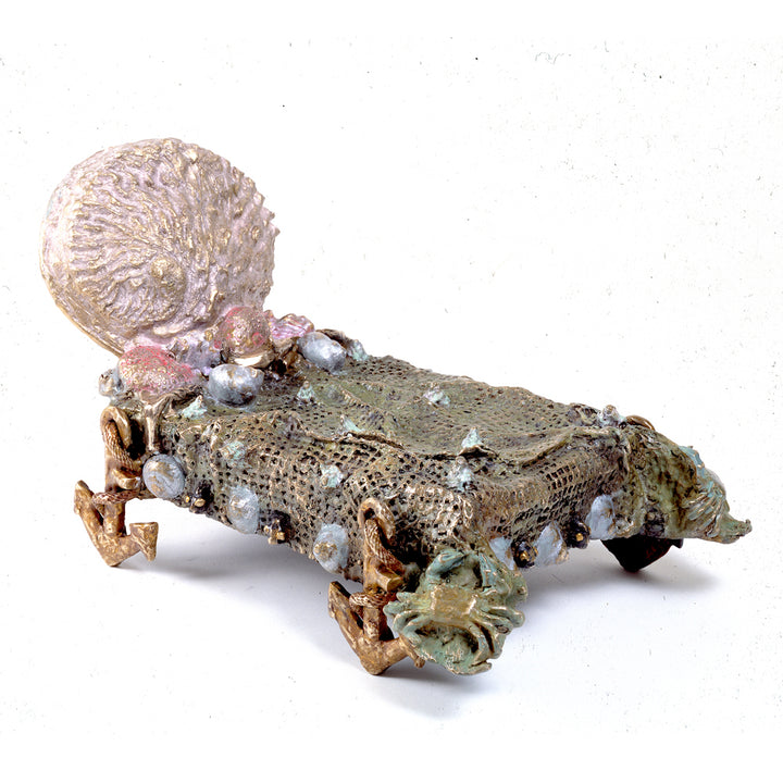 She made a necklace out of his oceans,she made a throw rug out of stars but each splintered mirror of maritime sky but each drowned meadow, but each sleeping in mollusk waves, but the bones of innocent sea creatures… George Wallace, poet laureate.